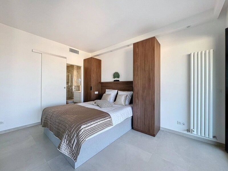 This exceptional 94 m² 3-bedroom apartment, in a quiet location with wonderful panoramic sea views, is on the top floor of a luxury residence in the Montfleury area in Cannes. The flat is in excellent condition and comprises: a large, bright living room opening onto a large west-facing terrace, an open-plan fitted kitchen, 1 bedroom with en-suite shower room, storage space and access to the terrace, a 2nd bedroom with en-suite shower room and a 3rd master bedroom with en-suite bathroom, plus shower and large dressing room. 3 toilets, including a guest one. Bonus: 90 m² roof terrace with 4 exposures. There is also an underground garage and a cellar.