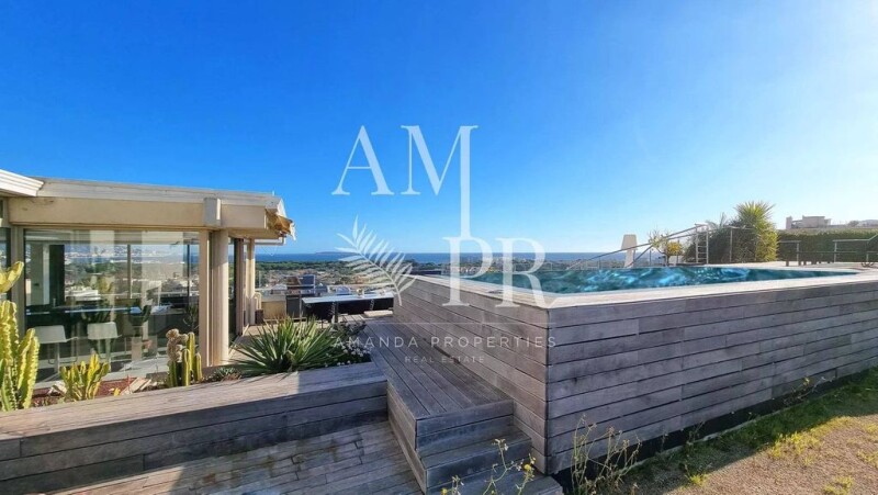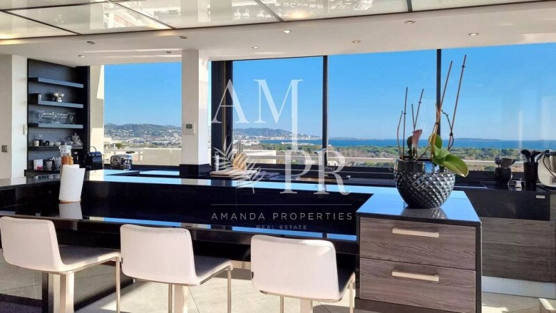 Our agency offers you this luxurious Penthouse with panoramic views over the Bay of Cannes, located just a few steps from the beaches, restaurants and shops. The flat comprises a bright living room with dining area and bar, a fully-equipped open-plan kitchen and three en suite bedrooms, including a master suite. It benefits from a 200m2 terrace with a private heated and refrigerated swimming pool, a solarium, a lounge and a petanque area. Two garages and a cellar complete this exceptional property. Possibility of buying a berth in the port.