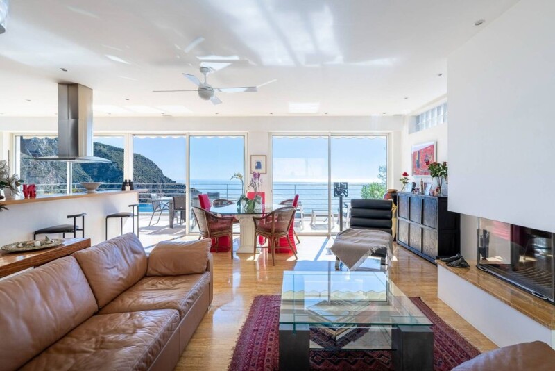 In the highly sought-after district of Eze Bord de Mer, famous for its naturally landscaped environment and absolute peacefulness, come and discover this sumptuous villa with garden and two terraces in a dominant south-facing position, enjoying breathtaking panoramic sea views and not overlooked at all! Designed over two levels, it features a spacious 60m² living room with open-plan kitchen, extending onto a 30m² south-facing terrace. This spacious, light-filled living area also has access to a swimming pool, perfect for cooling off on a hot summer's day. There is also a wine cellar. On the lower floor you will find 4 bedrooms, including a master suite. An independent studio and an enclosed garage complete this magnificent property.