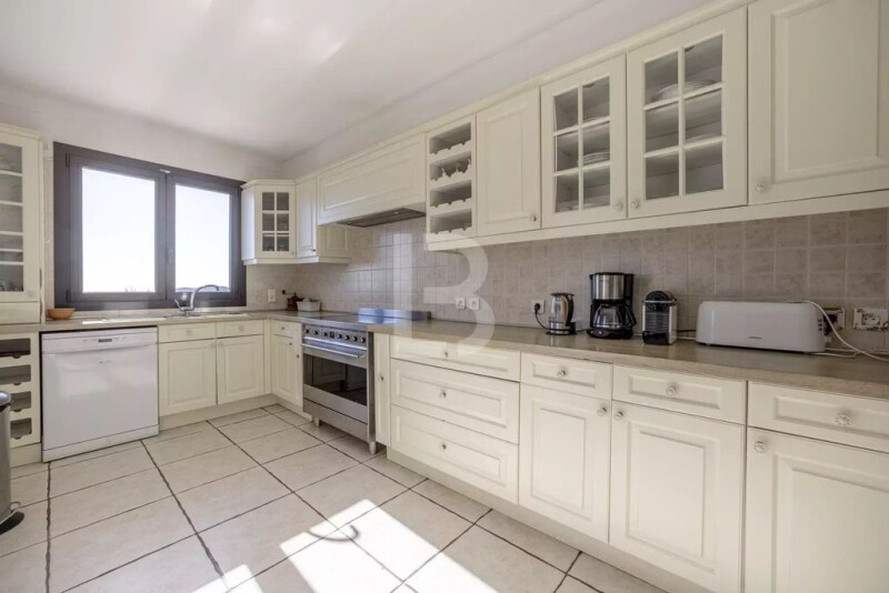 On the heights of Mandelieu, this stunning villa boasts a breathtaking panoramic sea view, with no overlooking neighbours. Ideally located near Cannes, the Cannes-Mandelieu aerodrome, golf courses, marinas, and beaches, it combines comfort and convenience. With a living space of approximately 265 m², the villa is set on a beautifully landscaped 2,600 m² plot, featuring a magnificent pool that enhances the exceptional setting. Inside, the villa offers spacious interiors and a well-optimised layout. From the entrance, a bright and airy living and dining area opens onto a stunning terrace overlooking the sea. The property also includes a fully equipped kitchen, three en-suite bedrooms with private shower rooms, and a study that can serve as a child’s bedroom or a dressing room adjoining one of the suites. On the garden level, a second generous living area complements the main living space, along with three additional en-suite bedrooms, each with its own shower room. The property features a secure garage and an outdoor area that can accommodate up to six vehicles. The dual access enhances convenience and ease of movement. A rare opportunity to own a prestigious home with an extraordinary Mediterranean sea view.