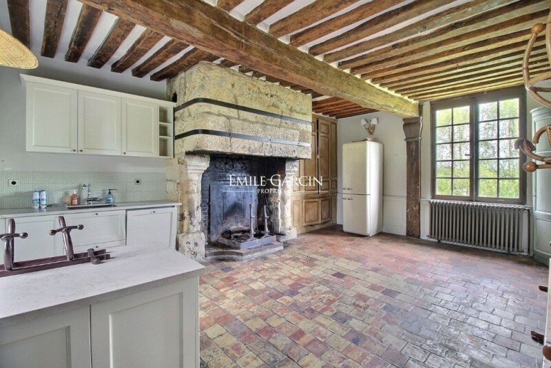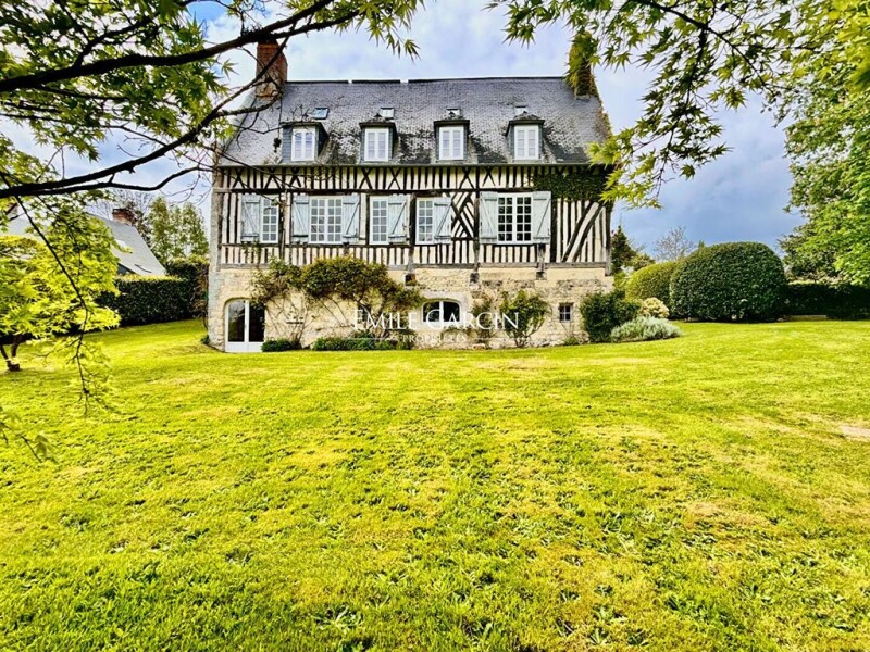 Located in the town of Fourneville, 10 minutes from Honfleur and 20 minutes from Deauville, this magnificent 16th century Augeron manor has been fully restored with charm and elegance and with respect for its period features. Spread over three levels, it includes on the ground floor: an entrance, a living room with fireplace, a dining room with bookshelves, a kitchen-diner with monumental stone fireplace and a guest WC; on the first floor: a master suite with bathroom and toilet, three bedrooms, a bathroom and a separate WC; on the second floor: a bedroom with shower room and a dormitory bedroom with bathroom and toilet; at garden level: a magnificent reception room with height ceiling and open stonework used as a home cinema or games room, as well as a boiler room and a utility room. It all sits alongside a beautiful garden of around 3500 sq.m.