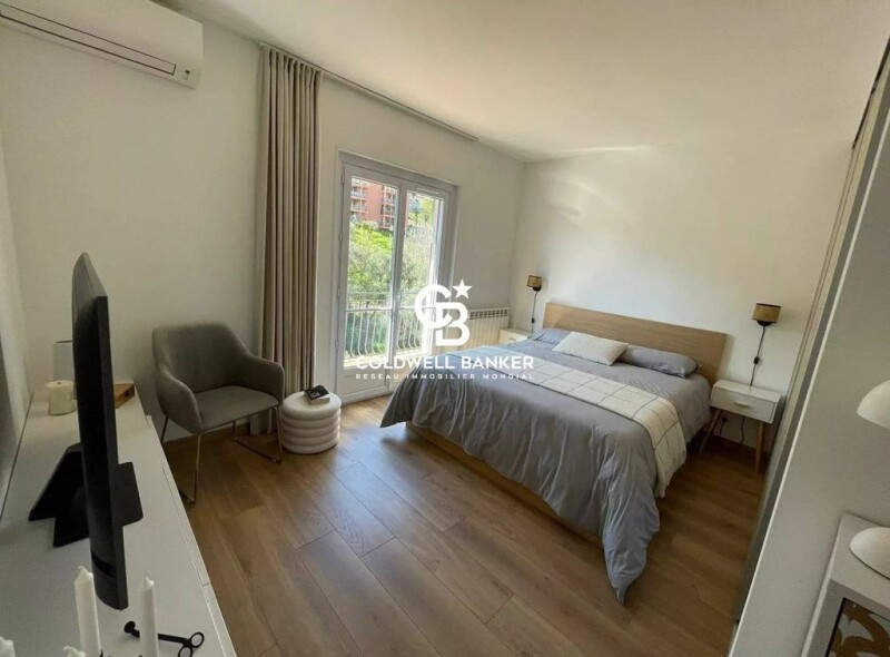 NEAR MONACO - ROQUEBRUNE CAP MARTIN - 3-room apartment on the top floor, renovated in 2018, in excellent condition, composed of: - an entrance hall with cupboard and laundry room, - a living room with a fully equipped and fitted kitchen . - Two bedrooms, each with its own large wardrobe, - a bathroom with bathtub and window, - separate toilets, - an outdoor parking space The numerous openings provide optimal light throughout the day in all rooms. Reversible air conditioning, individual condensing boiler, electric awning along the entire length of the terrace. Green view and sea view. Close to Carnolès, amenities and the beach, 15 minutes from Monaco.