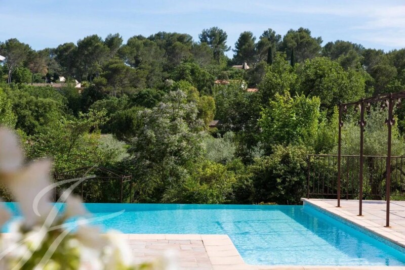 Joint Sole Agent Set in a sought-after secure estate near the picturesque village of Valbonne, this charming Provençal villa offers approximately 250 sqm of living space on beautifully landscaped grounds of 5,392 sqm. The property features a large 12 x 6 meter overflow swimming pool, creating a tranquil outdoor retreat. The villa includes a spacious sitting room with high ceilings, a fireplace, dining area and a spacious mezzanine. A fully equipped separate kitchen leading directing to the outdoor entertainment space and the garden. The master bedroom offers an en-suite shower room and a dressing room, there is a second large ensuite bedroom on the ground floor and 2 further bedrooms on the upper floor with a family bathroom. A fitness room, vast cellar, wine cellar, and carport provide added convenience. The mature grounds also feature a pétanque pitch, further enhancing the property’s appeal. With its combination of style, space, and serene surroundings, this villa is truly a ‘must-se.