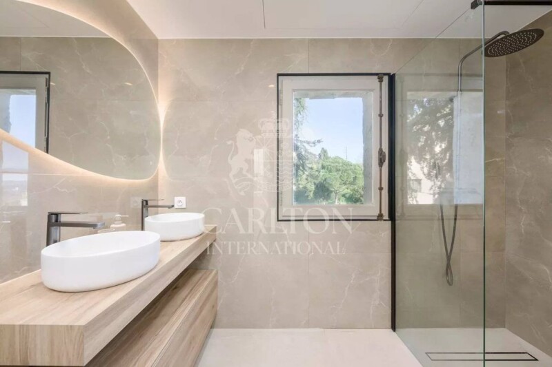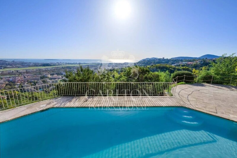 Located on the sought-after heights of Mandelieu, this exceptional villa offers a spectacular panoramic sea view over the Bay of Cannes, the Lérins Islands, and as far as Théoule-sur-Mer, with an ideal South/South-East orientation. With a living area of 300 m², this property has been fully renovated with high-quality materials. Nestled on a landscaped plot of 2,140 m², it features a enclosed garage and a swimming pool on the same level as the living room – a rare feature in this area – offering complete privacy and no disturbances. -- Ideally situated in a peaceful environment, just 5 minutes from the highway and 10 minutes from the beaches and Mandelieu’s port, this villa perfectly combines Provençal charm and modernity, offering generous spaces. The main living area of 140 m² includes: a cathedral-style living room with a ceiling height of 5 meters, a fully equipped open-plan kitchen, an office area and a TV space. Each room in this living area provides direct access to the pool and its sunny terraces. The villa offers 4 en-suite bedrooms, including a sumptuous 41 m² master suite on the upper floor with a private terrace. On the garden level, additional high-end features are available: a wine cellar, a cinema room, a gym or game room. This rare property on Mandelieu’s hillside represents a unique opportunity to live in an enchanting setting, in absolute tranquility, while enjoying breathtaking views of the Mediterranean. An exceptional property to discover without delay! REF: 00678 The average energy expenses in 2023 range between xxx€ and xxx€ per year. The agency fees are to be paid by the seller.