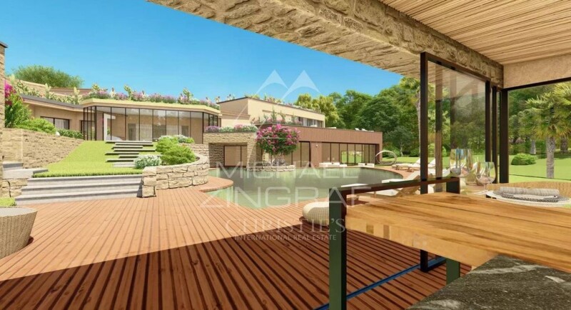 In the Parcs de Mougins area, a magnificent renovation and extension project for a Couëlle-inspired villa. Set in flat grounds of over 10 000 m2, the property will offer around 1,000 m2 of living space, comprising 7 en suite bedrooms, a 52 m2 independent caretaker's flat, a 8-car garage and an indoor swimming pool. The flat, family-friendly garden includes a large swimming pool with pool house.