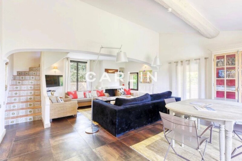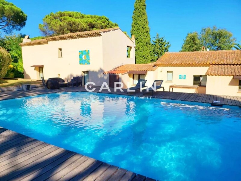 In a quiet, sought-after area between the beaches and the village of Saint-Tropez, this villa of around 200m2 will win you over with its Provencal charm. Almost all on one level and set in flat grounds of around 2000m2, this property offers a welcoming entrance hall, a lounge/dining room with fireplace and a fitted kitchen opening onto the terraces. 3 bedrooms with shower rooms open onto the garden, one of which has a pleasant sitting room that could be used as a 4th bedroom. The first floor is dedicated to the intimate parental area, with a spacious bedroom with private covered terrace, 1 bathroom/wc, a hammam and a study. By the pool and its terraces, you'll enjoy the peace and quiet of the Tropezian countryside, where you can relax under the pine trees. 1 independent studio can accommodate staff. Plenty of parking, fibre, alarm, automatic watering. Charming property with an exceptional address and superb potential, waiting to be visited. Nb: surface areas are given for information only. Information on the risks to which this property is exposed is available on the Géorisques website: www.georisques.gouv.fr.