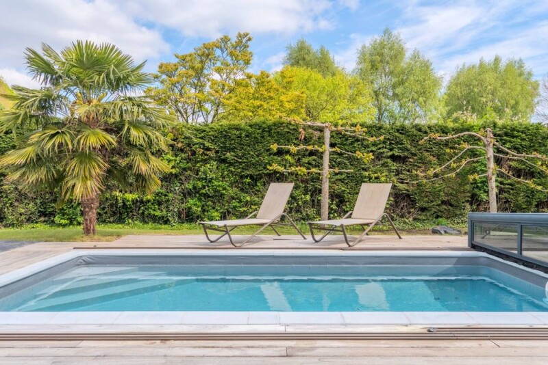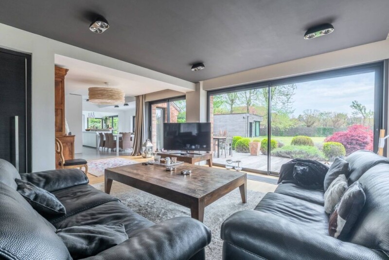 House constructed in 1985 on the market. It benefits from 210 sq. m of living space and great amenities, as well as a terrace, and is now for sale. With the village, a golf court, schools and a bus station close at hand, you are sure to appreciate the location. The house has four bedrooms, one bathroom, two shower rooms, three separate toilets and a kitchen, spread over one floor. The house also benefits from an intercom system, double glazing, a fireplace and a water softener.