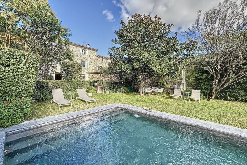 Located just 15 minutes from Uzès, this magnificent master house, built in 1861, has been tastefully restored, combining old-world charm with modern comfort. Upon entering, a spacious hall leads to the reception rooms. On one side, an elegant lounge in a row with the dining room, featuring a fireplace, opens onto the garden, inviting relaxation. On the other side, a kitchen equipped with a beautiful period fireplace also has a French door providing direct access to the garden, creating a warm and bright atmosphere. A graceful stone staircase leads to the landing on the first floor, which harmoniously serves four bedrooms. Two of these are true suites, each with its own shower room. The other two bedrooms, one of which is spacious, share a full bathroom. These two rooms offer a soothing view of the garden, enhancing the peaceful and intimate atmosphere of the upper floor. On the second floor, a space dedicated to children welcomes you, featuring a charming 46 m² dormitory, including a large bathroom with three sinks, a shower, and a toilet. This level also includes a fifth guest room, adorned with beautiful exposed beams. An additional 46 m² convertible attic, with a great ceiling height, completes this floor. The house opens onto a completely enclosed garden with no overlooking neighbors, beautifully landscaped and featuring a heated swimming pool measuring 10 x 4 meters. This restored property has managed to retain its Provençal charm through the preservation of period materials (parquet flooring, terracotta tiles, fireplace...). Ideally located in the tranquility of a charming village with numerous shops (cafés, restaurants, bakery, grocery store...).