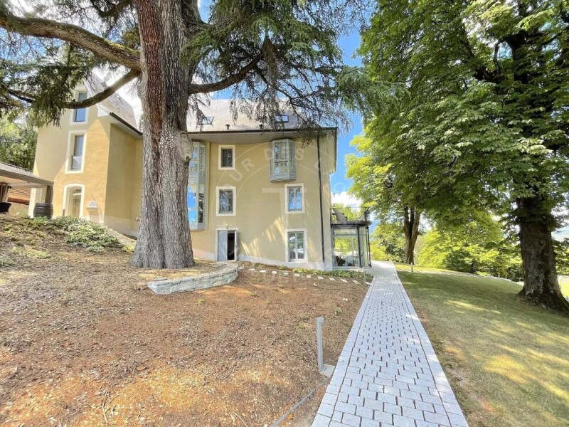 Exclusive! Splendid character manor house in a quiet, unspoilt setting close to the center of Chambéry. This superb 18th-century property boasts 583 m² of living space and 12,793 m² of wooded parklands, a 12m x 4m heated swimming pool and SPA. All the exterior fittings are of the highest quality and required an investment of around 1 million euros. The complete renovation took 2 years! The property comprises 4 levels and boasts top-of-the-range amenities (the interior work was carried out at a cost of around 1.5 million euros): parquet flooring, marble mosaics, air conditioning, alarm system, etc. It is possible to purchase the estate's luxury furnishings. The first floor comprises a suite opening onto a veranda, an office and a wine cellar. The second floor features a vast 40 m² living room with fireplace, a dining room opening onto a terrace, a large 22 m² fully-equipped kitchen and a lounge. The second and third floors lead to 5 suites, including a master suite with fitted dressing room, bathroom with double walk-in shower and round bathtub. A 55 m² janitor's cottage with garage completes this exceptional property! The location and configuration of this exceptional property, with its magnificent grounds and top-of-the-range amenities, would also lend itself perfectly to an event or seminar organization. Contact: Thierry UOMOBONO - Agent commercial EI - 06 09 65 63 89.
