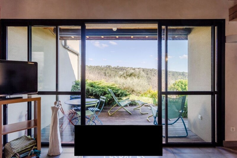 Just a few minutes' walk from the historic heart of Uzes, this architect-designed house flourishes in a natural setting, offering an incomparable living environment, where tranquility and the beauty of the landscape meet. Upon entering, you will be immediately captivated by the breathtaking view that extends over the Eure Valley and the national forest, a breathtaking panorama that can be admired from every window and every terrace. The ground floor reveals a beautiful, bright living space, perfectly open to the outdoors, with direct access to the swimming pool (10x3.5m) and the terraces. This level also includes a comfortable bedroom, which enjoys the same spectacular view, as well as its bathroom with toilet for greater comfort and privacy. Upstairs, a second bedroom immerses you in a soothing universe, offering a view of the Fenestrelle tower and the surrounding nature. It also benefits from its own bathroom and toilet, creating an intimate and refined space. In addition to this enchanting setting, this house offers quality services that will enhance your daily life. Designed by an architect, it features a wooden frame, combining authenticity and modernity. The pleasant and uniform underfloor heating ensures optimal comfort in all seasons, while the large double-glazed sliding windows offer maximum brightness and perfect thermal insulation. Finally, outside, the grounds, partly terraced, are beautifully landscaped and invite you to discover a carefully maintained garden, where every corner is enhanced by a diversity of plants. The carefully trimmed olive trees, rosemary, bay trees, and boxwood create a Mediterranean atmosphere. The bougainvillea and the Banks rose bush add a romantic touch to this magnificent garden. To complete the picture, parking spaces complete this rare and precious property in the city center, offering practicality and amenities. This house is not just a property, but an invitation to live in the heart of nature, in an idyllic setting, while benefiting from modern comforts. A visit is essential to appreciate all its beauty and exceptionalism. Contact us today to find out more.
