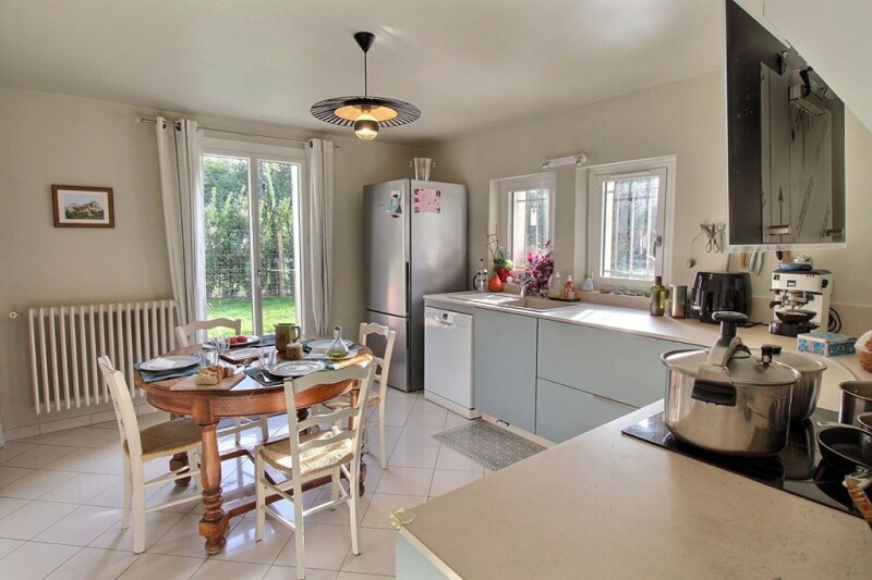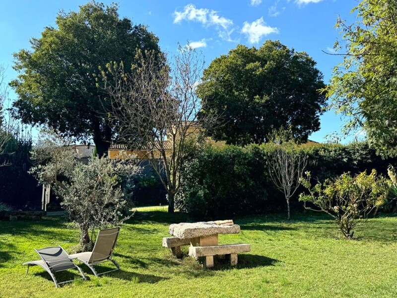 Maison de village entièrement rénovée en 2000 sur les bases d'une construction traditionnelle des années 60, et son jardin paysager arboré sur environ 1000 m² , située dans un quartier très résidentiel, au calme, face au massif des Alpilles. La maison comporte deux niveaux principaux, avec 109 m² au rez-de-jardin comprenant les pièces à vivre ainsi qu'une chambre avec terrasse (pouvant constituer une suite de plain-pied). A l'étage et sur 91 m² se trouvent 5 autres chambres, dont 1 avec son balcon privatif. Un 3ème niveau de 41 m², sous pentes, comprend deux pièces. Chauffage par pompe à chaleur. Eau de ville et tout à l'égout. Un auvent, côté est, sert de salle à manger d'été. Possibilité de construction d'une piscine.