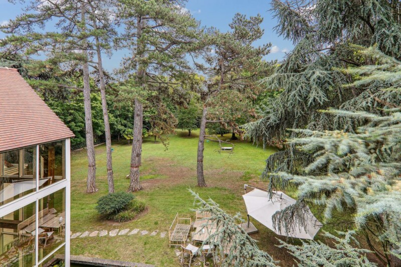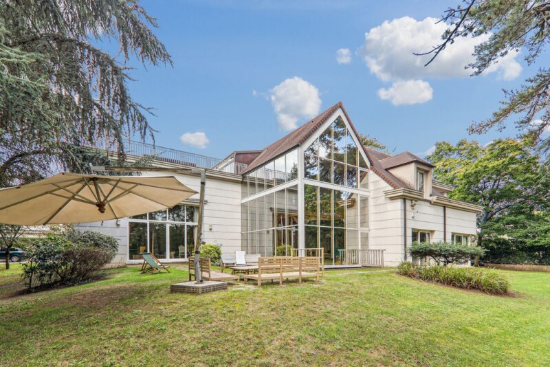 In a sought-after area hidden from view, Paris Vendôme Luxury exclusively offers you one of the most beautiful properties, built in 1993 by the architect Benoit Peaucelle, awarded the Grand Prix de Rome. This remarkable property dedicated to art and particularly to music and painting, will seduce you with its volumes, its modernity, its technical luxury and the exceptional character of its construction. Built on a plot of 5633 m2, on which there is an outbuilding of 85 m2, two garages and a shed, the house offers a living area of 850 m2 (+ basement). The main house offers on the ground floor two spaces bathed in light: a reception side with an 'art deco' entrance hall of 102 m2, a living room of 104 m2 dedicated to music with a 17th century fireplace, a painting studio, a dining room, a kitchen with dining area, an office and a guest toilet. The night side offers a master suite with a lounge area, a bathroom with shower, a dressing room and a toilet. Each of the rooms gives access to the garden. The first floor consists of two equivalent parts, each comprising two bedrooms, a bathroom and a toilet. On the second floor you will benefit from a bedroom with a dressing room and opening onto a terrace, a shower room and toilets. Basement: three multipurpose rooms, a boiler room, a room with the electrical circuit, a laundry room, a bedroom with bathroom and toilets. Magnificent landscaped garden on the banks of the Seine. Land suitable for swimming pool. 15 minutes from the RER A Chatou-Croissy station. Quick access to the A14 and A86. To schedule a visit, quickly get in touch with Paris Vendôme Luxury - International Realty.