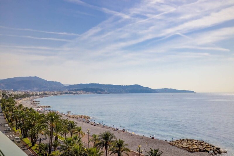 On the Promenade des Anglais in Nice, at the beginning of avenue de Fabron, we are pleased to offer you for sale, a new 5-room 4-bedrooms apartment, crossing, of 153m², located on the penultimate floor of a a building with caretaker. A rare feature in this privileged sector of the Promenade, the double living room and two main bedrooms of this apartment open via four bay windows onto a large 30 m² terrace with an exceptional view of the Baie des Anges. At the back, a small private loggia has a service access allowing, among other things, direct access to the garage and the adjoining cellar. We like: the direct access to the apartment by elevator, the sought-after address on the Promenade des Anglais, the high floor and the sea view. The location of the residence is ideal with a line 1 tram stop less than 100 m easily accessible by an entrance on Avenue de la Californie, a nearby bus stop and all local shops. This 5-room apartment on the Promenade des Anglais is offered to you exclusively by Côte d'Azur Sotheby's International Realty, real estate agency rue Longchamp in Nice.
