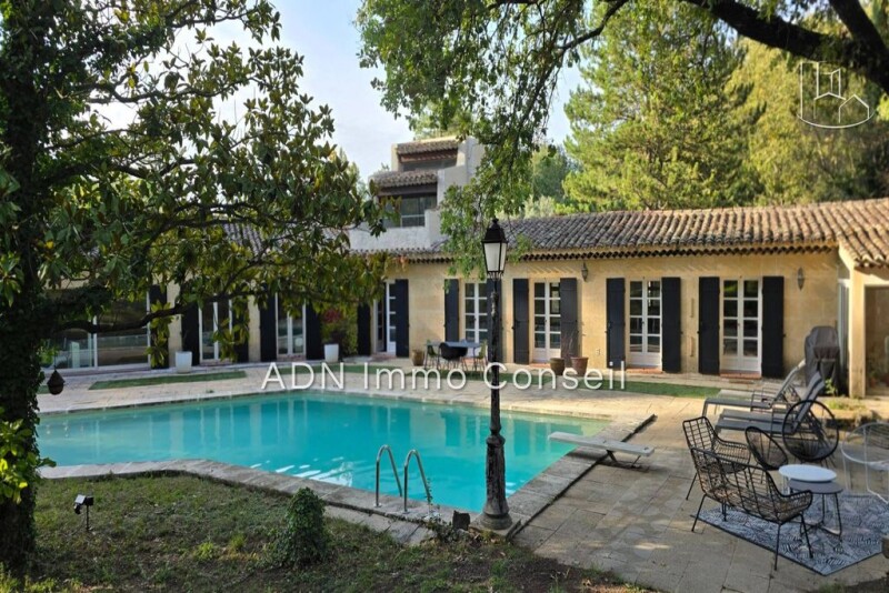 You're sure to fall in love with this characterful property in the heart of a magnificent wooded park of over one hectare in the Aix countryside. Located less than 10 minutes from the city center of Aix-en-Provence, its location is ideal, calm, and close to all transport and access: TGV station, Airport, Motorways. The mansion offers approximately 305 m² of living space, 60% of which is on the ground floor. Many possibilities of developments are offered to you. Currently furnished with 3 bedrooms, 3 bathrooms and showers, including a 70 m² master suite equipped with a wood stove with central shower, private bathroom. The living space is full of character with a cathedral lounge, a typical Provençal and fully equipped kitchen, its adjoining dining room and shared spaces: games room with billiards, gym, sauna, spa... In the continuity of the property is a caretaker's house of approximately 70 m², you can thus offer it to your friends, your family, your trusted person, or allow yourself to have a guaranteed rental income. You will also discover the possibility of parking seven vehicles in complete safety, and at least as many at the entrance to the estate. A 25-meter long swimming pool with its beach and pool house will provide many moments to share and make them special. This property, ideally located, offers you the chance to combine prestige, Provence, and a convenient geographical location. It is ideal for both a large family and for investment. Do not hesitate to contact us to discover it!.