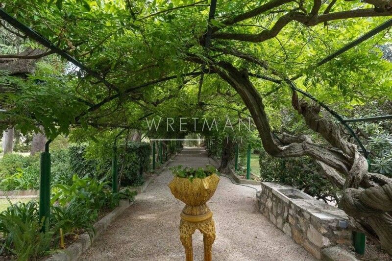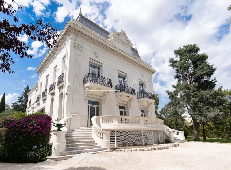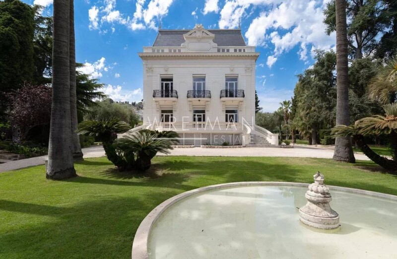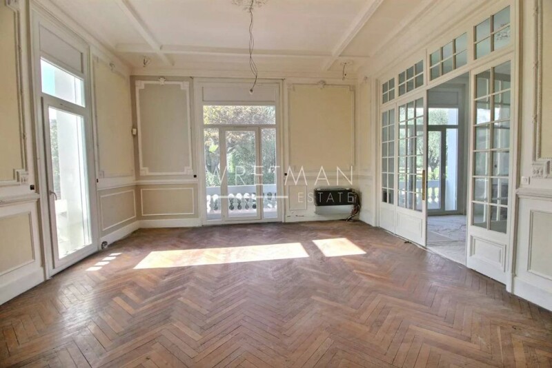 Discover this magnificent 1900s villa, just a few steps from beaches and shops. This property, worthy of the grandest palaces on the Côte d'Azur, offers refined interiors with superb period details: moldings, fireplaces, original herringbone parquet flooring and balconies. Upstairs, some rooms still need renovation, and the kitchen can be fitted out to your taste. This late 19th-early 20th-century residence welcomes you to a vast park planted with palm trees, enhanced by a fountain and a majestic terrace overlooking the green space, while two Greek-style temples add a touch of charm. The upper floors are linked by marble staircases with elegant balustrades. On the first floor, a bright living room opens onto a terrace, a vast dining room with French windows, a kitchen, a laundry room and an office/games room, formerly a ballroom. Upstairs, three bedrooms with balconies and two bathrooms with dressing rooms await you. A large basement, currently used as a utility kitchen, offers numerous possibilities. A little further away, two janitor's houses in need of refurbishment add further potential to this property. Numerous parking spaces and a pretty olive grove complete the ensemble. Close to transport links and the town center, just 10 minutes from the airport. A rare and exceptional property not to be missed! État des risques et pollution: réalisé (null).