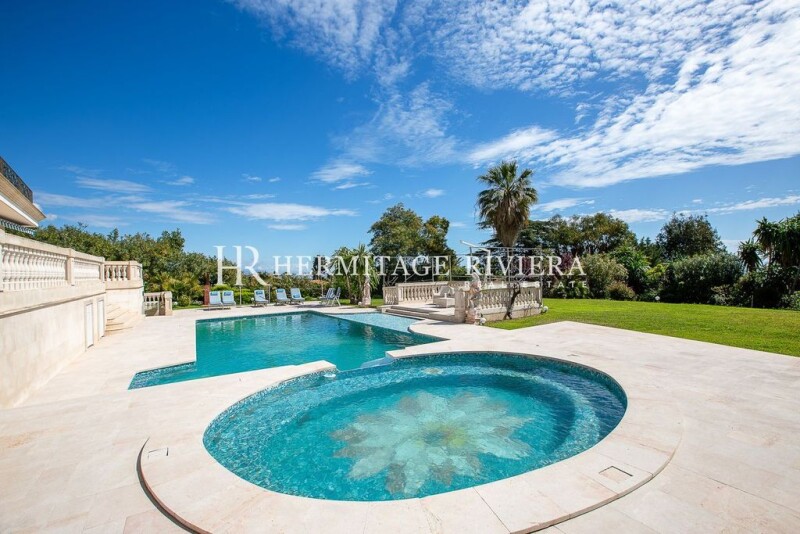 Discover the Mediterranean luxury with this stunning villa in Cannes’s prestigious California district. This residence offers an exclusive lifestyle and top-notch amenities, making it a true oasis of comfort and refinement. The spacious living room and dining area, spanning over 150 m², are flooded with natural light, creating an elegant and welcoming environment for entertaining guests or simply relaxing with family. You can fully enjoy the Mediterranean climate with direct access from the living room and dining area to the outdoor terraces, sparkling pool, and landscaped garden, offering breathtaking views of the sea. The villa boasts 3 Master suites with dressing rooms and private bathrooms, along with 6 bedrooms each with their bathrooms, perfect for children or guests. Additionally, a caretaker’s house with 2 bedrooms and a lounge provides extra space for added convenience. The summer kitchen with a barbecue and oven is perfect for outdoor dining and social gatherings. And for ultimate relaxation and well-being, a private spa area with sauna and steam room awaits you. The property also features a garage for 3 cars and multiple parking spaces. Nestled on a vast plot of 4600 m², it offers privacy, tranquility, and an idyllic setting to enjoy life under the Mediterranean sun. Don’t miss this unique opportunity to acquire a prestigious residence in one of Cannes most sought-after neighborhoods.