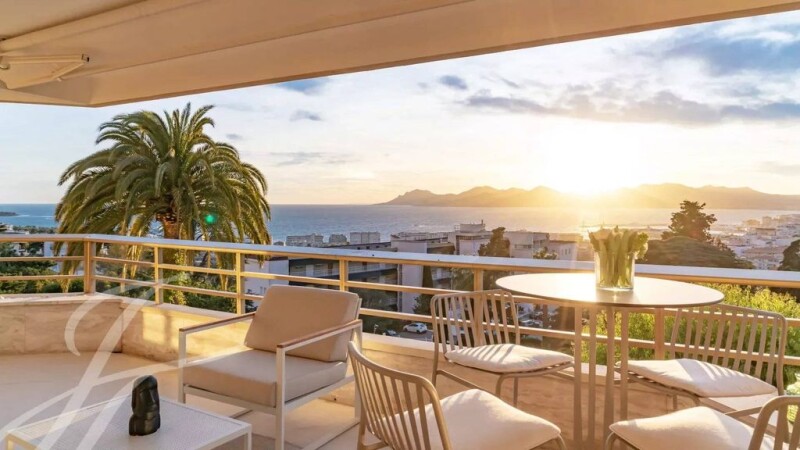 Outstanding 100 sq.m 4 room flat located on a high floor of a sought-after residence in Basse Californie. It benefits from a panoramic view over the bay of Cannes and the Lérins islands. The flat is composed of a large living room with open kitchen opening onto the south-west facing terrace, 3 bedrooms en suite. Large terrace of 27 sq.m offering a superb sea view. A parking space completes this beautiful flat entirely renovated with luxurious fittings. The residence has a concierge service and an indoor swimming pool.