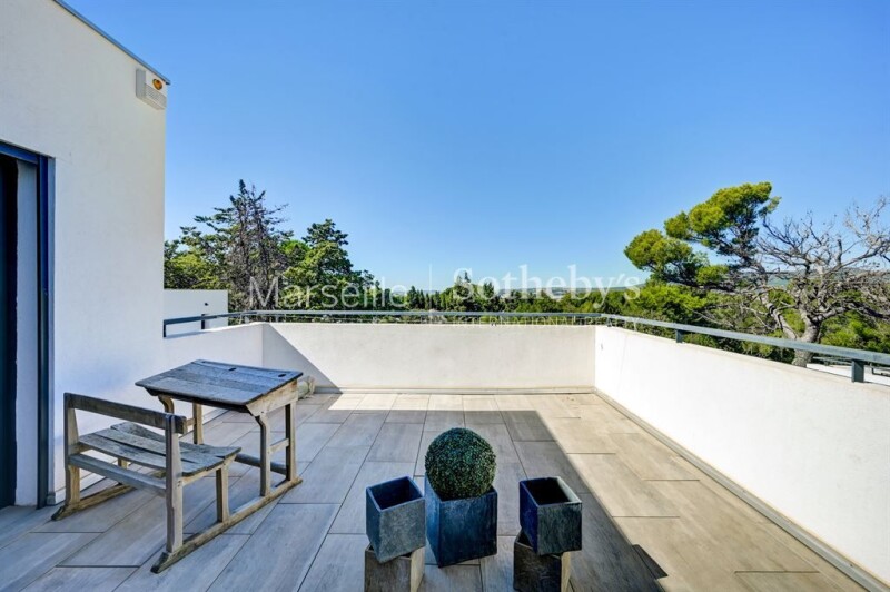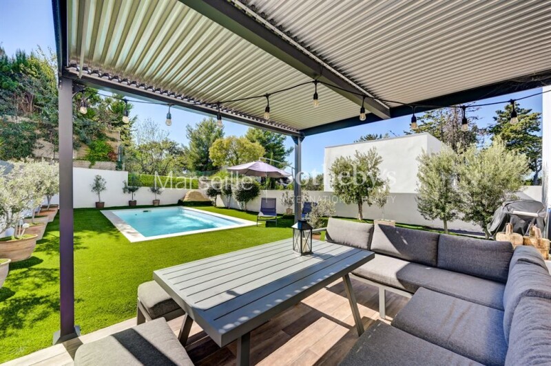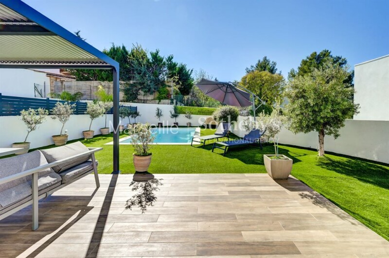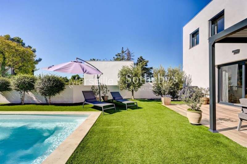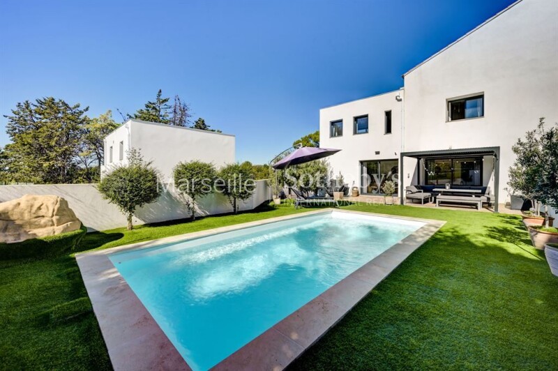 For sale in Les Trois-Lucs, in the 12th arrondissement of Marseille, a bright contemporary house of 102 sqm on a 317 sqm plot, located in a quiet residential area.
