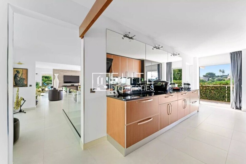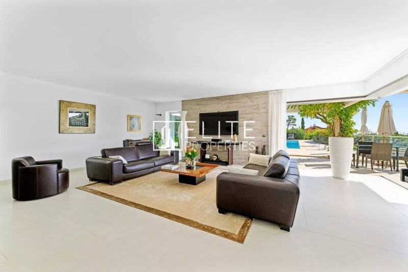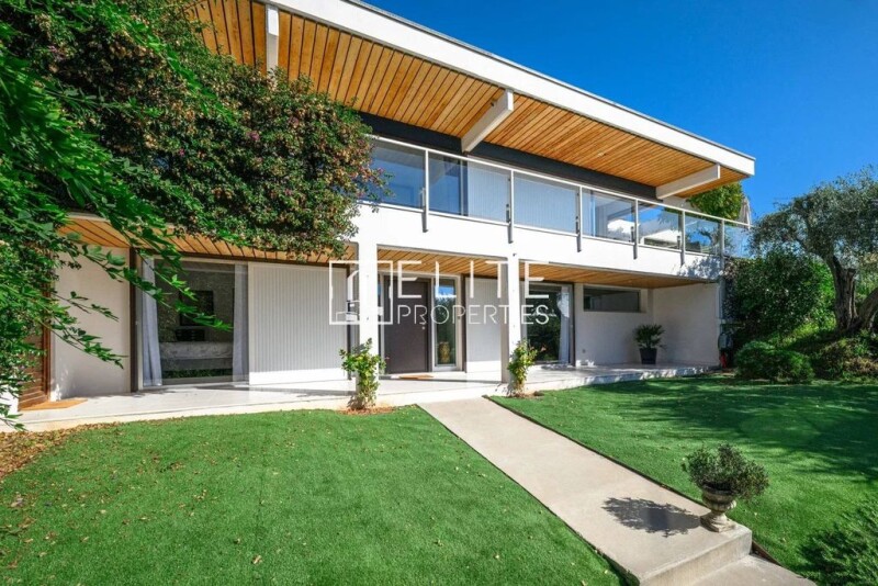 Hidden in a dead end, in a quiet area, in the heart of a sought-after residential area, exceptional villa of 257 m2 designed by an architect. Nestled in the heart of a plot of nearly 2500m2 planted with olive trees and various trees, this splendid contemporary with six bedrooms reveals spacious interiors combining elegance, refinement and singularity. This villa with clean lines has large openings offering the place natural light at all times of the day as well as a superb view of the sea and the hills. This haven of peace, 15 minutes from the center of Nice, is composed on the ground floor of an entrance, two master suites with shower room / bath. Upstairs, 4 bedrooms including a master bedroom with bathroom, two shower rooms, a semi-open kitchen, a dining room, a spacious living room opening onto the terrace and the swimming pool. A large garage of 42m2 completes this property. Photovoltaic panels, heat pump, outdoor lighting, alarm, intercom, video surveillance, air conditioning, electrical terminal, sliding windows, and beautiful services guarantee comfort and simplicity on a daily basis. Finally, it is ideally located 20 minutes from the airport, walking distance from primary and nursery schools and 15 minutes from the sea. Information on the risks to which this property is exposed is available on the Géorisques website: georisques.gouv.fr Risk and pollution status: achieved (null).