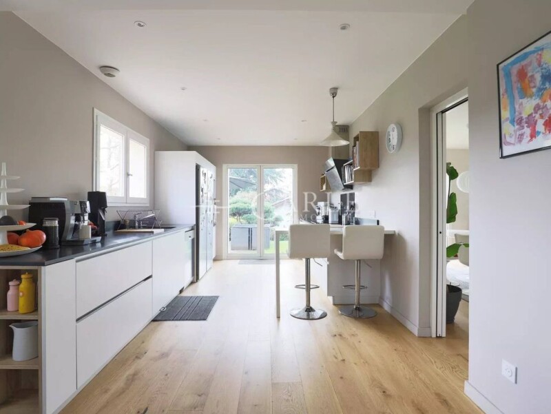 Offering the cachet of the past, spacious interiors and exteriors, this beautifully renovated villa is a rare find in Genas, both in terms of its location and its features. Ideally located in a quiet, unoverlooked town center, less than 10 minutes' walk from the Place de la République and its shops, on a large 2,076 m² plot planted with trees, this superb 1978 Villa with 230 m² of living space and 267 m² of floor space, largely renovated with taste and quality materials in 2023, will seduce you with both its features and its magnificent exterior. On the ground floor, you'll enjoy a large, bright living room of over 40 m², with south-facing bay windows overlooking the 10-meter by 5-meter swimming pool. Continuing on from this living space, you'll find the dining area with its fitted kitchen opening onto the dining room and its storeroom, with a total surface area of over 40 m². Still on the same level, you'll find a laundry room, toilets and an immense parental space of over 45 m², including a bedroom overlooking the pool, a bathroom, a large dressing room and an office that can be used as a second bedroom. Upstairs, on one side there are 3 bedrooms and a bathroom with shower and bath, and on the other side a large room currently used as a games room and TV lounge, a bedroom and an attic for storage. Outside, this Villa also benefits from a pool house, a large carport closed on the side and which can be fitted with a door, a large parking area and a beautiful garden planted with trees. Don't wait any longer to discover this exceptional property through the virtual visit that we'll be happy to send you on request after discussing your project. Information on the risks to which this property is exposed is available on the Géorisques website: www.georisques.gouv.fr État des risques et pollution: réalisé (2024-11-12).