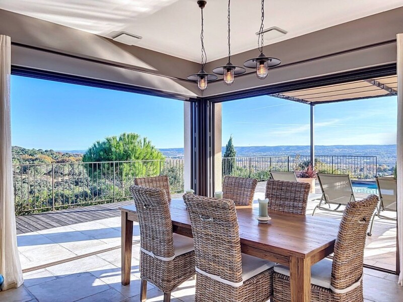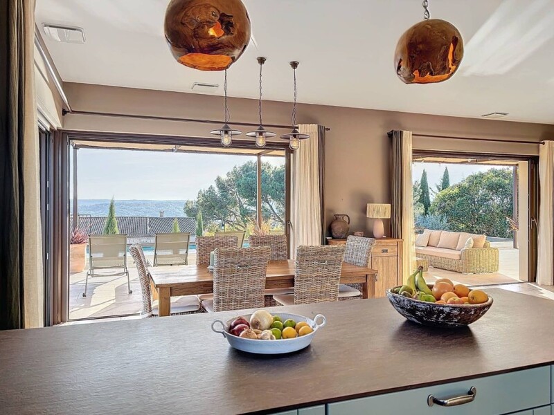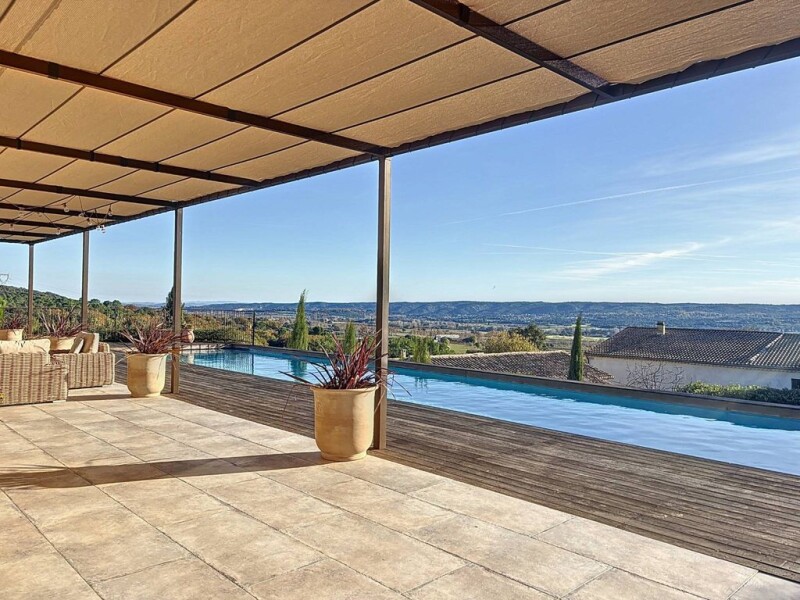 At the Gates of Uzès, a Contemporary Haven with Breathtaking Views Perched in a dominant position within a privileged setting, this contemporary 260 m² residence seamlessly blends indoor and outdoor living. Designed with an In/Out philosophy, it opens entirely onto a stunning 150 m² panoramic terrace, offering breathtaking views and direct access to a magnificent 17-meter heated lap pool. Bathed in natural light, the living space features a custom-designed open-plan kitchen, a lounge with a fireplace, and a dining area, creating a warm and inviting atmosphere. On this level, the master suite boasts a private dressing room and en-suite bathroom, ensuring comfort and privacy. On the garden level, two elegant suites enjoy direct access to the beautifully landscaped grounds, while an independent 25 m² apartment provides additional space for hosting guests. A fully equipped gym, laundry room, double garage, and a wine cellar complete the outstanding amenities of this remarkable home. The meticulously designed Mediterranean-style garden enhances the serenity of this exceptional property, where refinement and a luxurious lifestyle harmoniously converge.