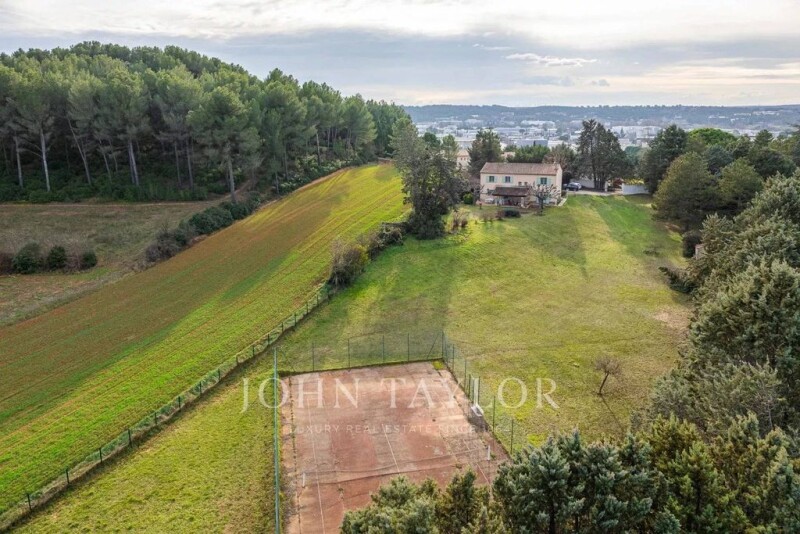 Your John Taylor prestige real estate agency is pleased to present for sale a bastide for renovation in Aix-en-Provence in a beautiful setting. Just a few minutes from the city center, this bastide for renovation represents a rare opportunity to combine authenticity and modernity in a peaceful, verdant setting. Built in 1987, the property offers 210 sqm of living space, swimming pool available, on 8,000 sqm of wooded grounds featuring a tennis court. Organized on two levels, the first floor comprises an entrance hall, a bright living room, a dining room, a closed kitchen and a scullery. Upstairs, a master suite with Wellington dressing room and full bathroom joins three bedrooms sharing a bathroom, offering generous, functional spaces to welcome family and guests. An independent 40 sqm garage, built as an annex house, can easily be converted into guest accommodation or workspace. The land is attractive for its tranquility and landscaping potential, and less than 10 minutes from international schools. Renovation of this bastide will modernize the heating system, woodwork and roof, while preserving the charm of the original materials. A unique property to personalize, in a privileged setting. The best transactions always bear the same signature. John Taylor.