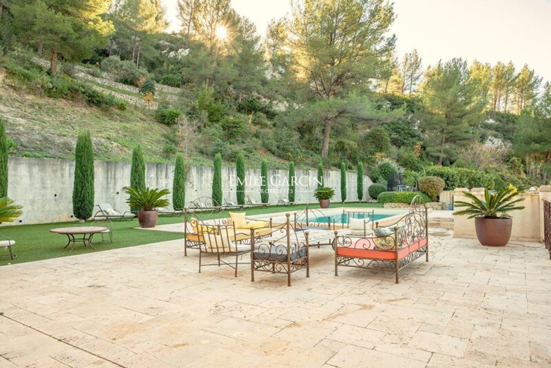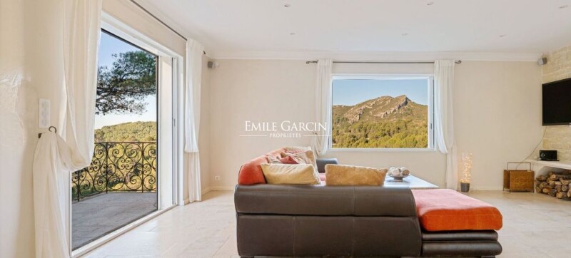 Sitting on 7,500 sq.m of leafy grounds on the hillside, this magnificent Provencal-style country house presents 350 sq.m of living area affording a breathtaking view of the Garlaban hills so loved by Marcel Pagnol. Located a few minutes from the village of La Treille and the start of various hiking trails, this property presents the ideal blend of transquillity and practicality. The garden level comprises a living room with fireplace and two bedrooms with adjoining bathrooms, one of which has a private terrace. The lower part consists of a large fully equipped kitchen backing onto a terrace, a welcoming bar area and two additional bedrooms. Upstairs, you will find a large master suite of 65 sq.m with bathroom and dressing room, guaranteeing comfort and privacy. The outdoor spaces are equipped with a swimming pool (9 x 5m), a pétanque area and a landscaped garden with direct access to hiking trails.