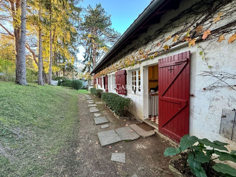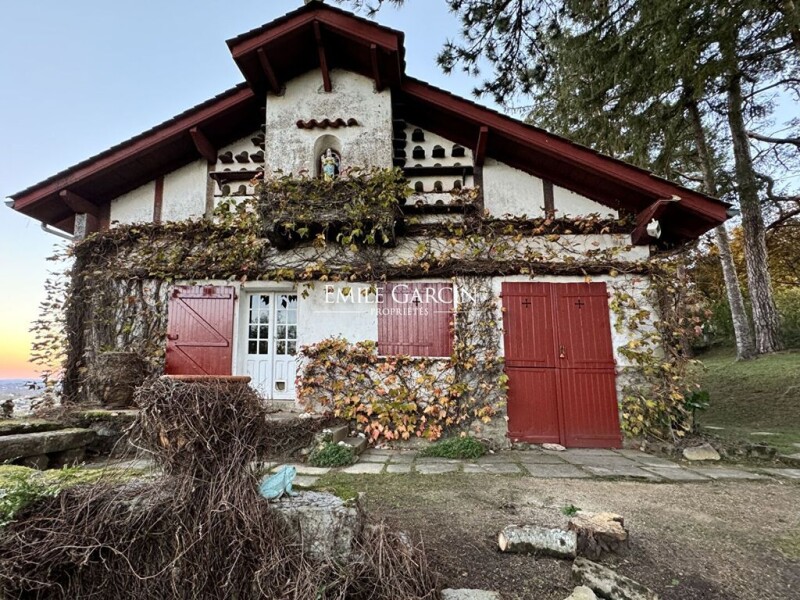 Boasting a panoramic view of the Atlantic Ocean, the rolling countryside and the Larrun, this authentic Basque farmhouse presents approximately 175 sq.m. The entrance leads to a living room with insert fireplace and high ceilings. On the mezzanine, you will find a bedroom / home office with storage space. Two bedrooms and a shared bathroom. Country kitchen with external access and dining room with fireplace. On the garden level, there are two suites with dressing rooms and shower rooms backing onto the garden and panoramic views. A charming unrenovated outbuilding presents approximately 100 sq.m of living area spread over two levels. In need of works. The magnificent garden is adorned with larches, hydrangeas, azaleas and Abelias. Potential to build a swimming pool. Parking facilities. Electric car charging socket.