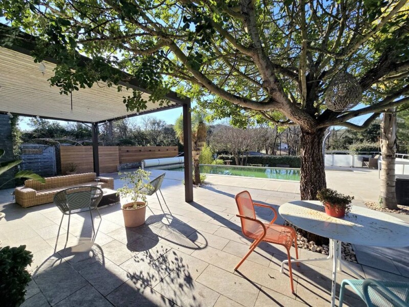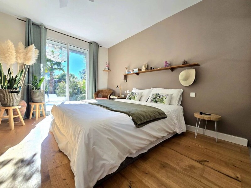 Located in Bormes-Les-Mimosas, in a highly sought-after area just 5 minutes from the shops and beaches, this pleasant house opens onto the outdoors with its gardens and terraces, surrounded by nature. Its loft-style living room/kitchen, once an artist's studio with generous volumes, opens out through large windows onto the outdoors and the pool area. A master suite opening onto its terrace completes the ground floor, while upstairs an open-plan space serves 3 bedrooms and a bathroom. An independent 2-room apartment of around 40m2 can accommodate guests, family or additional rental income. Plenty of parking inside the property and 2 large garages.