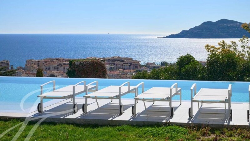 Located in the heart of the highly sought-after Croix-des-Gardes district, this superb contemporary villa offers generous volumes combined with luxurious appointments and a unique panorama. With a surface area of around 500 m², the villa comprises a reception hall on the first floor, a vast living room comprising a double lounge, dining room and open-plan kitchen, an en suite bedroom, dressing room, shower room and guest toilet. Garden level: dining room and open-plan kitchen, laundry room and separate toilet, three en suite bedrooms, master bedroom. An elegant infinity pool and large garage complete this exceptional property.