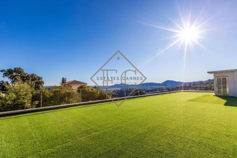 Luxury, Modernity, and Serenity on the French Riviera Discover this exceptional villa, built in 2021, a true masterpiece of contemporary architecture. Nestled in a peaceful and preserved environment, it combines ultimate comfort, elegant design, and breathtaking views of the Mediterranean. This property is a rare and coveted haven of peace with its high-end features, elevator, and a 108 m² rooftop solarium. A View to Take Your Breath Away Perched on a beautifully landscaped 890 m² plot, this villa offers a permanent spectacle: a 180° panoramic view stretching from the shimmering sea to the captivating Esterel hills and the Pointe de l’Aiguille. An Exceptional Location Just minutes from beaches, shops, the charming village of La Napoule, and its marina, this villa boasts an ideal location, blending practicality and a high-quality lifestyle. Interiors Designed for Excellence Upper Level: Bright and open spaces greet you upon entry. A spacious office, convertible into an additional bedroom, opens onto terraces with spectacular views. Two additional en-suite bedrooms directly access the infinity pool, perfectly blending into the natural surroundings. Garden Level: The main living area invites friendliness and relaxation. The living and dining rooms, separated by an elegant glass wine cellar, open onto a fully equipped American kitchen and a large sun-drenched terrace. A sumptuous master suite completes this level with a dressing room, refined bathroom, and dedicated wellness space with a massage lounge. Additional 108 m² Level: Fully equipped with a second kitchen, bathroom, wine cellar, and various utility areas, this space can be tailored for a gym, independent apartment, or leisure area. Unrivalled Features Outdoor Spaces: Infinity pool, Mediterranean garden, and panoramic rooftop solarium. Parking: Capacity for 6 vehicles, including a carport. Technology & Comfort: Advanced home automation, integrated air conditioning, and an elevator serving all levels. Live at the Height of Elegance Thoughtfully designed in every detail, this villa offers an exceptional living environment that harmoniously blends modern design with absolute comfort. A rare and valuable opportunity. Contact us now to arrange a visit and let yourself be captivated by this unique gem of the French Riviera. État des risques et pollution: réalisé (null).