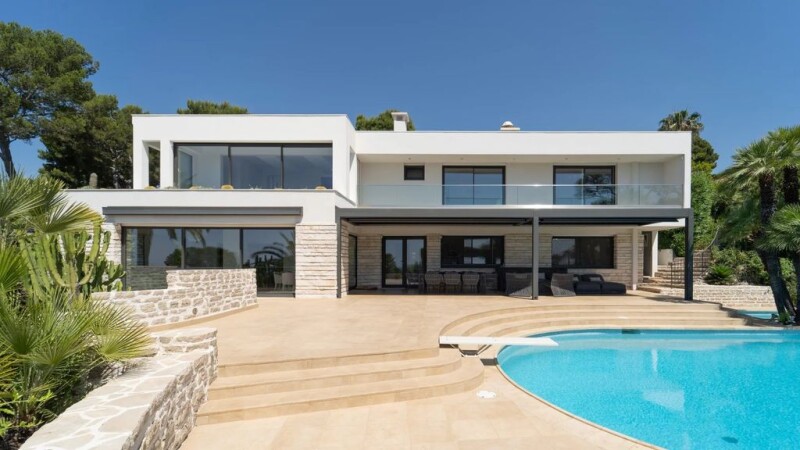 This modern villa in Antibes offers exceptional panoramic sea views and is located in a quiet residential area. With a living space of 512 m², it features eight bedrooms spread across three levels. The ground floor includes a bright living room with sea-facing windows, a separate kitchen with access to a fully equipped terrace, and a home cinema room. The main floor houses the master bedroom with a balcony and two other bedrooms, all with sea views. The garden level is equipped with a sauna, a kitchen-living room, and several storage spaces. The vast Mediterranean garden spans 4,369 m², adorned with cypress, olive, and palm trees, ensuring total privacy. The heated and secured pool, usable year-round, is surrounded by relaxation areas and comfortable terraces. A 55 m² guest house with two independent studios is also part of this property. Close to the beaches and the highway, this villa combines luxury and convenience with modern features like air conditioning and a security system. Additionally, it includes a pétanque court, a barbecue area, and a pond with a waterfall.