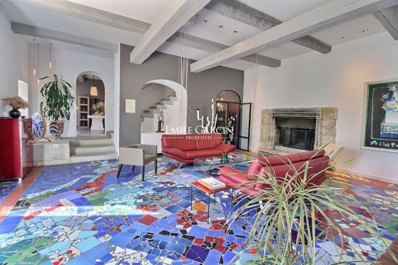 Located at the foot of the Alpilles, just a few minutes by foot from the town centre, this artistically designed property offers a main farmhouse built over different levels and boasting elegant living spaces. Six air-conditioned ensuite bedrooms. Outbuilding with two additional bedrooms. Beautiful garden, terraces, pond, pétanque area, swimming pool and poolhouse. Full of charm and character.