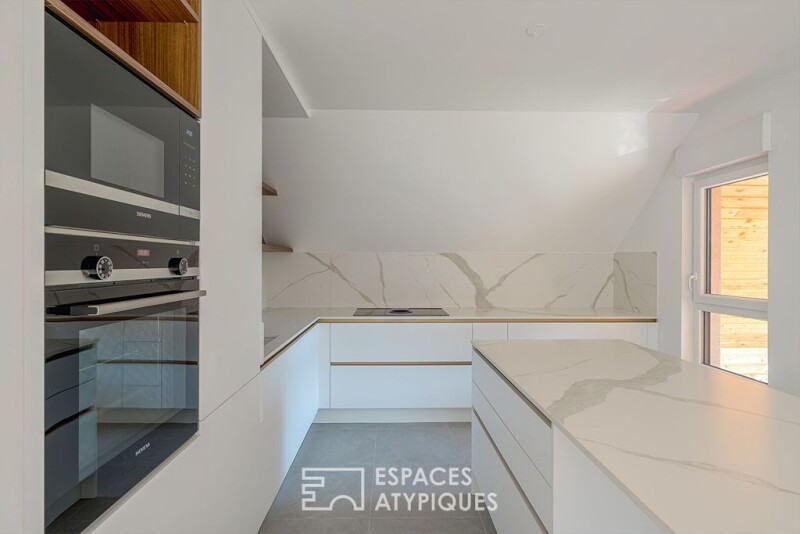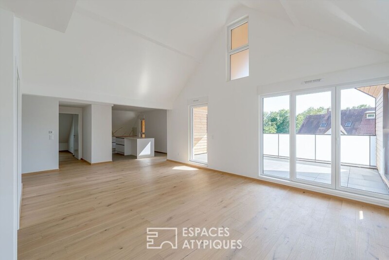 Located just a few minutes' walk from the town centre of the charming and much-loved historic town of Obernai, this human-scale, two-storey residence of 5 homes offers a harmonious, contemporary living environment. The meticulous finishes complement the bright, functional living spaces, which also boast superb views of Mont Saint-Odile. Located on the 2nd and top floor with lift, this flat spans 131 m² (148 m² on the ground floor). The entrance hall opens onto a hallway leading to the spacious 58 m² living room with cathedral ceiling. It includes a top-of-the-range open-plan fitted kitchen, a lounge, a dining room and a single-storey opening onto the south-west-facing 19 m² terrace. The night space is divided into two separate areas on either side of the living room to ensure privacy for all. The master suite, with its private bathroom and dressing room, is adjoined by a utility room. At the other end are two bedrooms sharing a shower room. Equipped with underfloor heating and electric roller shutters for maximum comfort, this flat is just waiting for its future happy owners. An attic, a cellar, a garage, an indoor parking space and an outdoor parking space complete the features of this property. Obernai train station 9 minutes away by bike Shops 5 minutes away by bike ENERGY CLASS: C / CLIMATE CLASS: C Estimated average annual energy costs for standard use, based on energy prices in 2021: between euros689 and euros932 Contact: Kévin 06 95 36 00 99 Condominiums of 5 units (No proceedings in progress). Annual expenses : 1 euros.