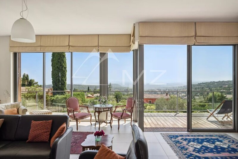 This superb property is nestled in the hills above the town of Vence, in a highly sought-after residential area. It enjoys a prime location with breathtaking views of the Mediterranean and the green hills. Built using high-quality materials, this prestigious property combines elegance and modern comfort to offer an exceptional living experience. The landscaped grounds, covering some 3,200 sqm, are remarkably well maintained and perfect for enjoying the sunny Côte d'Azur climate. The property extends over two floors and boasts 4 luxurious bedrooms, each equipped with an en-suite bathroom for optimum comfort. The salt-heated swimming pool is a haven of peace for relaxing and enjoying the best sea views. To complete the ensemble, a garage is available for vehicles. This property is a rare opportunity to live in a prestigious estate offering an exceptional living environment on the Côte d'Azur.