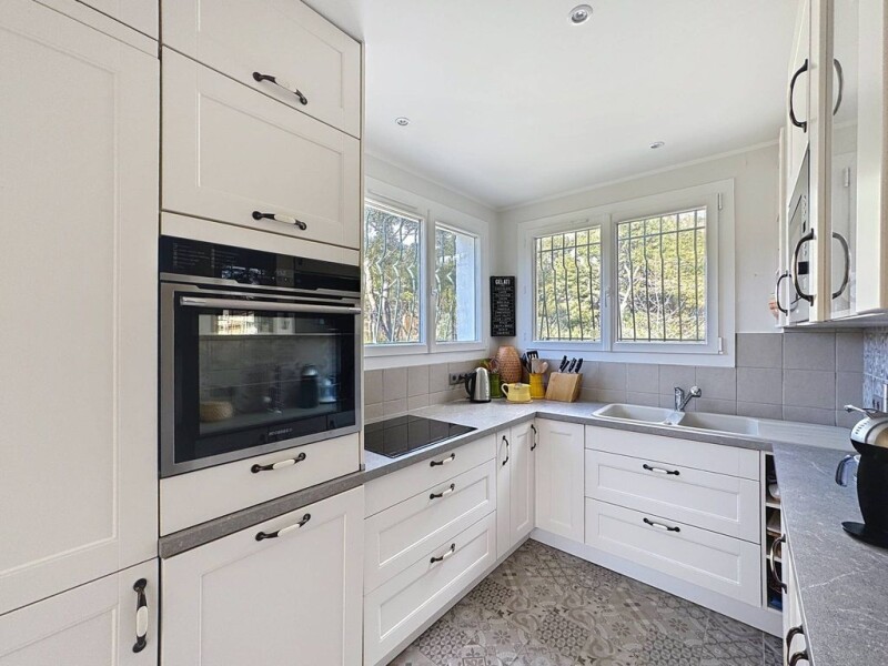 Charming Family Home with Spacious Grounds & Independent Living Areas Ideally located, this beautiful family home sits on a magnificent 1,799 m² tree-lined plot, offering space, tranquillity, and versatility. Divided into two independent dwellings, connected by an internal staircase, it is perfect for multi-generational living or rental potential. Main Living Area (First Floor – Approx. 100 m2): - Spacious entrance hall - Kitchen and a large living room opening onto an enclosed terrace - Two well-appointed bedrooms - Shower room & toilet Garden-Level Apartment: - Comfortable lounge & kitchen - Three bedrooms - Shower room & enclosed terrace Additional features include a storage room, workshop, laundry room, and a basement cellar with external access. A carport provides space for up to three vehicles. A rare opportunity – early viewing recommended!.