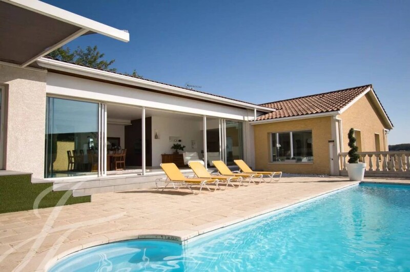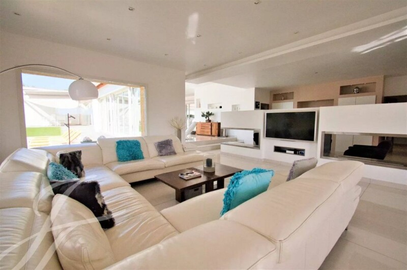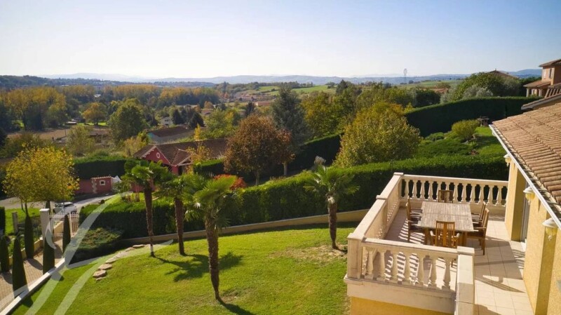 23 km north of Limonest, redesigned and renovated architect-designed villa in a dominant position, with views over the neighbouring hills. Designed with entertaining in mind, this villa offers 356 m² of living space, including 195 m² of living rooms comprising an entrance hall/lounge, dining room and kitchen, offering wonderful views and easy indoor/outdoor access via large sliding windows opening onto the pool area and jacuzzi to the south on one side and onto a landscaped garden with a 35 m² outbuilding on the other. The lounge also opens onto a balcony with panoramic views. On this level, there is a study and the night space comprising a master suite with shower room, 3 bedrooms and an independent bathroom. The bedrooms are air-conditioned. The ground floor comprises two bedrooms, one of which is 20 m² in size, a large dressing room, a shower room, a large utility room and a vaulted cinema room with overhead projector, as well as a vaulted, converted wine cellar, all spanning around 70 m². This level also has a storage area of more than 80 m² and a garage with space for 4 vehicles. On the 1,793 m² of land, a semi-buried shed can be used to store gardening equipment, bikes, motorbikes or quad bikes. The property is beautifully appointed, with a top-of-the-range, highly functional kitchen, two ethanol fireplaces, sliding woodwork with oriental blinds and roller shutters, underfloor heating with a new heat pump, a home cinema and an electric gate with intercom. To arrange a viewing of this property, please contact Claire Barralon on 07 60 13 70 00, cbarralon@john-taylor.com, estate agent registered with the Lyon RCS under number 904 488 533.