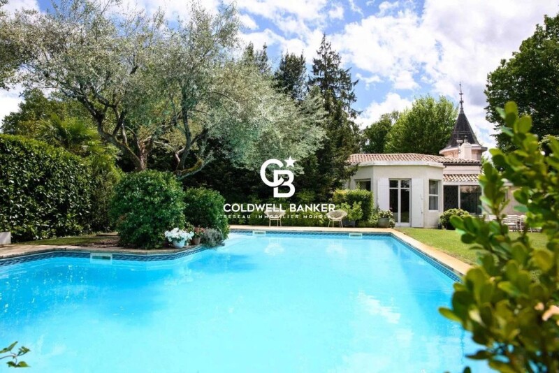 Superb charterhouse listed on a wooded park of 2355 m² composed of centuries-old trees. Beautiful layout opening onto a double reception room with a bow window overlooking the park and the pool, a large eat-in kitchen with a laundry room, 4 bedrooms including a separate master suite with a bathroom, a shower room, and 3 toilets. Absolute calm and timeless elegance, with preserved original features and refined finishes, beautiful high ceilings, and noble materials. A quiet pool surrounded by a magnificent green space. Garage and an outbuilding that can be converted. Numerous shops and renowned schools in the immediate vicinity, and especially tram and SNCF station for easy access to Bordeaux center, Mérignac airport 10 minutes away. Information about the risks to which this property is exposed is available on the Géorisques website: www.georisques.gouv.fr.