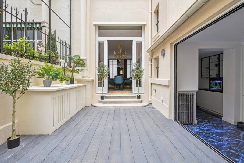 Exclusive Listing – Elegant Private Mansion This magnificent private mansion, entirely renovated with noble materials, offers approximately 310 sqm (3,337 sqf) of refined living space, featuring impressive ceiling heights and timeless elegance. The ground floor boasts a double reception area opening onto a terrace, a separate kitchen with pantry, and a bright dining room overlooking a 25 sqm (269 sqf) patio. A mezzanine level includes a guest WC and dressing room. On the first floor, the sumptuous primary suite features a dressing room, a luxurious bathroom with a rain shower, and a WC. The second floor offers two additional suites, each with its own bathroom and WC. The top floor houses a chalet-inspired bedroom with its private shower room and WC. The home’s Versailles and herringbone parquet flooring adds an air of classic sophistication. The windowed basement includes a gym/playroom and two cellars, one of which is a wine cellar. A laundry room completes this exceptional residence, which is fully air-conditioned. Ideally located near the Bois de Boulogne and Métro Sablons. DPE: C/A.