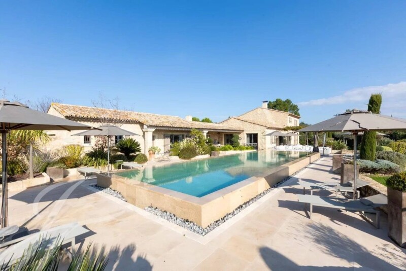 Prestigious, ready-to-live-in property of approx. 300m², far from noise and bustle, this mas combines all the advantages of modern comfort with the charm of an old house. Exposed stonework, spaciousness, luminosity and the choice of natural materials give a feeling of well-being and quality. There are 5 en suite bedrooms, 2 of which are on one level. The 80m² living room is warm and inviting, opening onto the terrace with its backdrop of the Alpilles mountains. The 3000m² landscaped garden features a heated infinity pool. 2 large garages, several parking spaces and a host of amenities complete this house, which is surrounded by calm and nature. État des risques et pollution: réalisé (null).