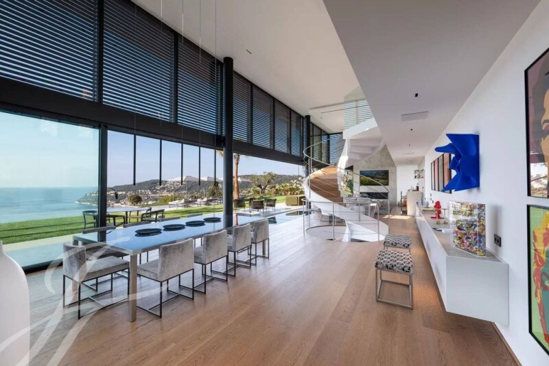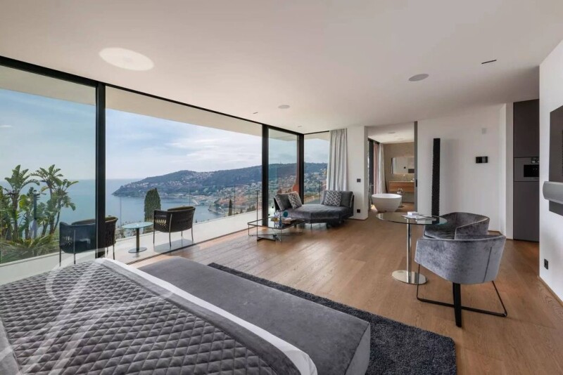 This exceptional property located in the most sought after area of Villefranche-sur-Mer faces the bay and the old town of Villefranche-sur-Mer. 5 minutes from downtown and Beaulieu-sur-Mer. The main villa and the guest house, all of them of contemporary architecture, offer a total surface of 1100 sqm and are harmoniously implanted on a flat land of more than 4000 m2 entirely landscaped and planted with rare and Mediterranean species. The main villa is a unique and exclusive creation. Designed by a renowned architect in a truly contemporary style, it combines noble and different materials such as stone, wood, metal, glass,... The villa benefits from a fluid layout, without loss of space. The materials chosen are of high quality. The home automation system is pushed to the limit, making a smart villa with a high level of security. The colors are clear and the furniture is sober and chic. All living areas have a sea view and open onto large terraces and the garden. As you enter the villa, you will be flooded by a filtered light that shines through the huge windows. Two staircases and a glass elevator serve all the floors. The garden level opens onto the huge living room bathed in light which offers a 180 degree view on the garden, the 20m swimming pool, the sea and the mountains. It is organized in a warm and friendly living room, a bar area, a formal dining room with its huge table and its transparent wall-mounted wine cellar, a fully equipped and equipped high-end kitchen, separated but not isolated. Three bedrooms with their dressing rooms and each with its own shower room also occupy this level. The second floor is for owners. Around a large master bedroom with its private terrace are distributed dressing rooms and individual bathrooms for Mr. and Mrs. A nice office and another large bedroom with bathroom complete this level. Level -1 has a beautiful indoor pool, spa, service and staff areas and a large garage with room for at least 8 cars. There is plenty of other parking available on the property. The annexed house allows you to receive friends and family in perfect conditions. The large living/dining room with kitchen and 3 beautiful en suite bedrooms are of the same standard as the main villa. Two detached garages complete this property. This rare and exceptional property, located in a very noble and sought-after environment of Villefranche sur Mer, does not suffer from any noise or overlooking nuisance. It offers the 4 conditions of an exceptional property: luxury, space, location and view! Photos : Air Creative État des risques et pollution: réalisé (2023-05-22).