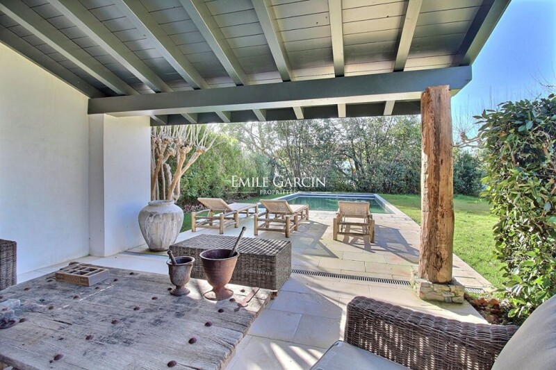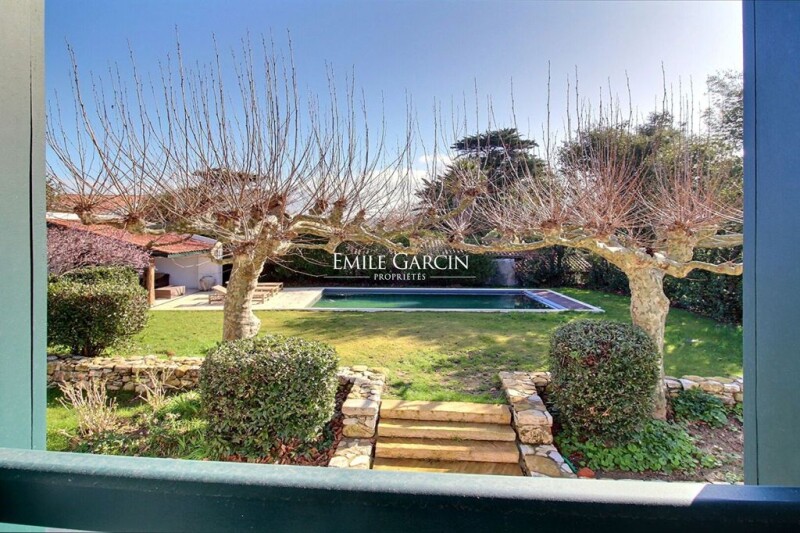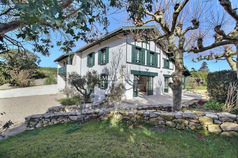 A few minutes from Biarritz, and a few steps from the beaches and the golf course, this rare address seduces with its accessibility and its green setting, while remaining close to shops. This 18th century Labourdine farm harmoniously combines the charm of authenticity and the refinement of a contemporary renovation with the preserved privacy of a wooded garden. Built on a carefully landscaped plot of 1,400 sqm, this assertive character residence deploys approximately 300 sqm of living space, sublimated by a very demanding renovation. Its facade, elegantly bordered by plane trees, opens onto a landscaped garden structured in terraces, where the heated swimming pool (10 x 4 m) and its pool house make up a privileged relaxation area. The interior, both warm and refined, reveals a subtle balance between noble materials and generous volumes. The ground floor accommodates a vast living room of 80 sqm with a beautiful fireplace; separated by a workshop glass roof, a fitted and equipped kitchen opens onto an awning sheltering a summer dining room. A bedroom suite completes this level. Upstairs, a landing houses five bedrooms, including three suites with warm volumes and high ceilings, a dormitory with a shower room as well as an additional bedroom and a separate bathroom. The exteriors, designed as a true haven of serenity, offer several reception and relaxation areas. Two terraces extend the interior volumes to receive friends and family in complete privacy. Outdoor parking spaces and garage. This property embodies the elegance and authenticity of a house of character, where every detail has been thought out to combine modern comfort and architectural heritage. Noble materials, high-end services, generous volumes and neat setting make it a rare property, ideally located a few minutes from Biarritz. A unique place to live, designed for lovers of exclusivity and refinement.