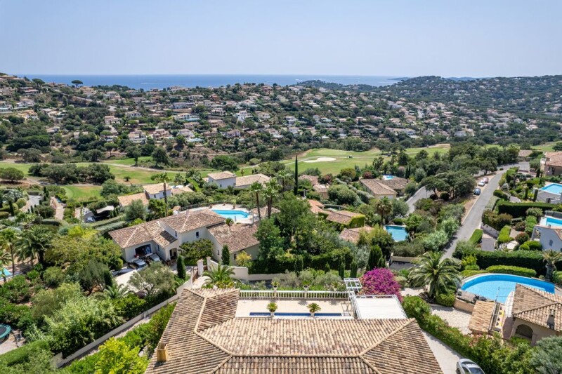 Welcome to Label Agence, Maison Bonaparte. We are delighted to present this superb villa with sea views, ideally located near the golf course, just 5 minutes from the beach and the center of Sainte-Maxime. This spacious villa is spread over two floors and offers over 300 m2 of living space. It offers two levels which can be independent or shared with: - On the ground floor: a large living room, dining room, and its office opening onto the terrace. An independent kitchen equipped with quality equipment, with access to the terrace and sea view. 1 parental suite with cupboards and bathroom. - On the ground floor: a large living room opening onto a terrace with access to the swimming pool, the sea view is always present, 2 bedrooms each with their own bathroom and a third bedroom. An open equipped kitchen. The villa is also perfectly suited for double occupancy, providing privacy ideal for stays with guests. The interior includes a garage, a sports area and an office. You will also find a sauna and a laundry room. The vast terraces offer an ideal space for relaxation, while the 5 x 10 m heated swimming pool invites you to swim and relax. The beautifully landscaped garden is adorned with palm, olive, lemon, mica, lavender, oleander, bougainvillea, rose and lavender, creating a Mediterranean ambiance bewitching. This villa has been built with quality materials including pocket doors, double glazed windows, automatic shutters, underfloor heating, air conditioning, water softener, and much more. Moreover. All rooms are equipped with air conditioning, sliding doors opening onto the garden or the terrace, as well as a private bathroom/shower. Don't miss this unique opportunity to own this magnificent villa. Contact now Audrey Bonnet Zorzi of Label Agence, Maison Bonaparte on 06 19 22 96 06, to organize a visit and discover for yourself the exceptional charm and comfort offered by this property. We are here to make your most demanding real estate dreams come true.