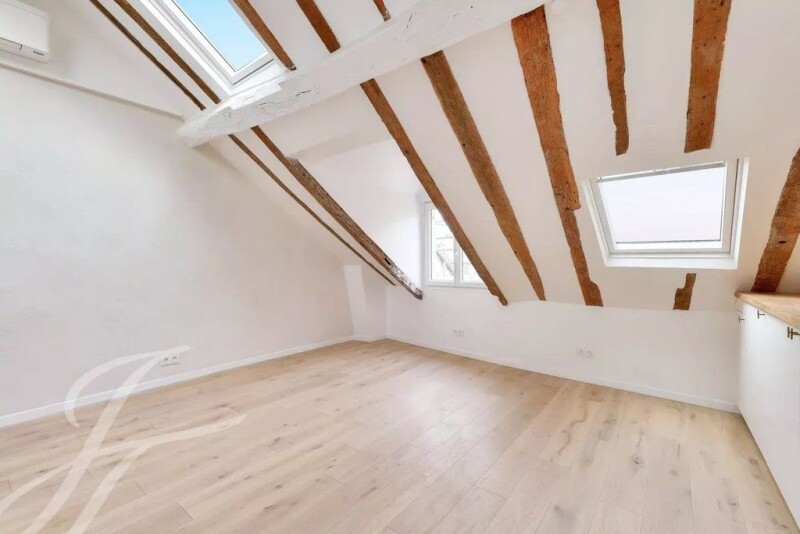 Between Place Vendôme and Marché Saint-Honoré in an 1830 building, superb 38m² apartment (25.55m² Loi Carrez), totally renovated and air-conditioned. Located on the 6th floor with elevator to the 4th, it comprises: - a living room - one bedroom - a shower room with toilet Bathed in light, this property combines charm and character with its high ceilings (3m), exposed beams, solid oak parquet flooring and unobstructed views. In the heart of a district renowned for its luxury brands, art galleries and architectural heritage, this property enjoys a privileged location close to all amenities. Communal areas are in perfect condition. The facade and roof are currently being renovated. État des risques et pollution: réalisé (null).