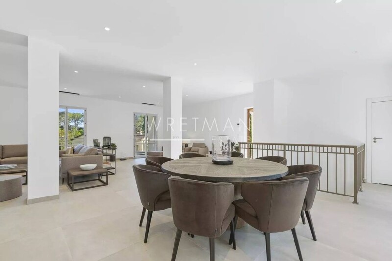 In a closed domaine with walking distant to bakery, school and golf club you find this high end newly renovated villa. In a calm neighborhood with south exposition. 4 master bedrooms on the ground floor and on the first floor a 5th master bedrooms, alternative an office. The open living area is on the first floor too, with direct access to the terrasses and the pool. All in a very private setting with high end material and open living area. État des risques et pollution: réalisé (null).