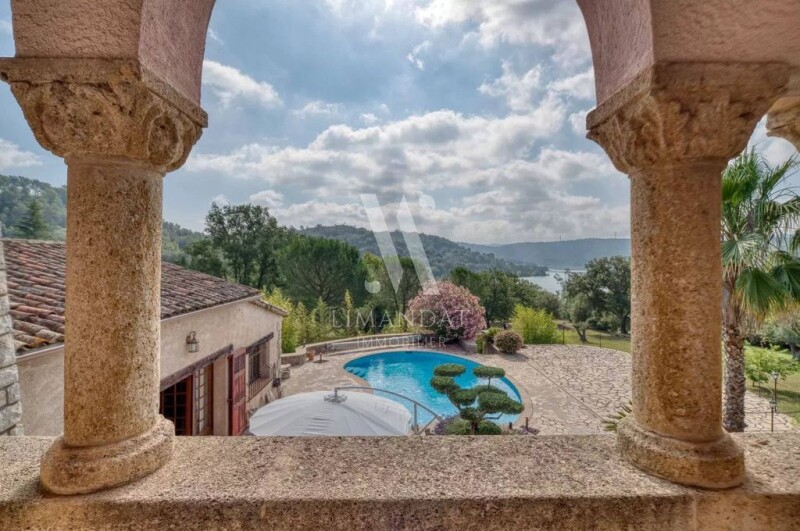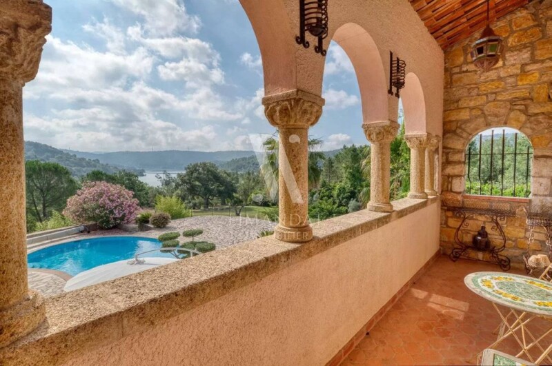 Let yourself be charmed by this exceptional and rare property, located safely near Lake Saint-Cassien. This villa, covering 320 sqm with a 160 sqm basement, enjoys an idyllic setting. It is nestled in a nearly 2-hectare park designed to protect it from the lake's flooding and is entirely enclosed. This lush, landscaped garden is equipped with an irrigation and exterior lighting system and offers direct access to the lake's beaches, ideal for swimming or boating. An autonomous fish pond adorned with water lilies enhances the unique charm of this place. The property also features beautiful flat, wooded areas, making it ideal for keeping horses. Everything has been thoughtfully designed to provide a peaceful life in absolute comfort. The freeform pool, approximately 10 x 5 meters, is complemented by an equipped summer kitchen and a shower room with WC. One of the villa's terraces offers a serene space to enjoy the view of the lake. The interior decoration is distinctive, with signature mosaics for the kitchen backsplash and unique pieces created especially for the villa, notably in the master bedroom's bathroom. This atypical villa is a unique and rare setting. It includes 5 bedrooms, each with its own bathroom and WC, plus a 100 sqm basement. Fees charge seller Information on the risks to which this property is exposed is available on the Géorisques website georisques.gouv.fr.