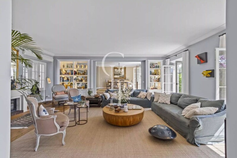 Joint sole agent - Located in a very sought-after area, this superb villa has been completely renovated with taste and quality materials. The garden, designed by English Garden, is beautifully landscaped and offers an enchanting setting with a swimming pool that invites you to relax. The environment is bucolic, offering absolute calm and a clear view of the surrounding area. The villa has 5 en-suite bedrooms, one of which has independent access, ideal for guests or staff. The living spaces are large and bright, designed to be both convivial and functional, with careful finishes that add a touch of elegance. The double garage provides secure parking, and access to the property is easy with several additional parking spaces. The villa is not overlooked, offering total privacy. Ideal for a family or a residence or second home offering an exceptional living environment.