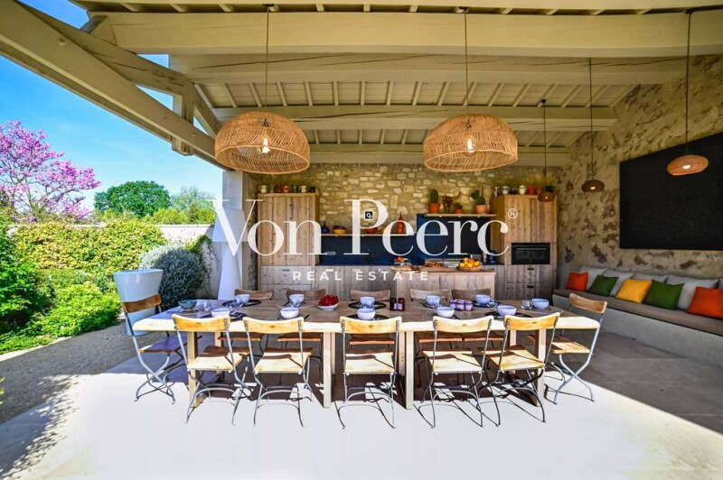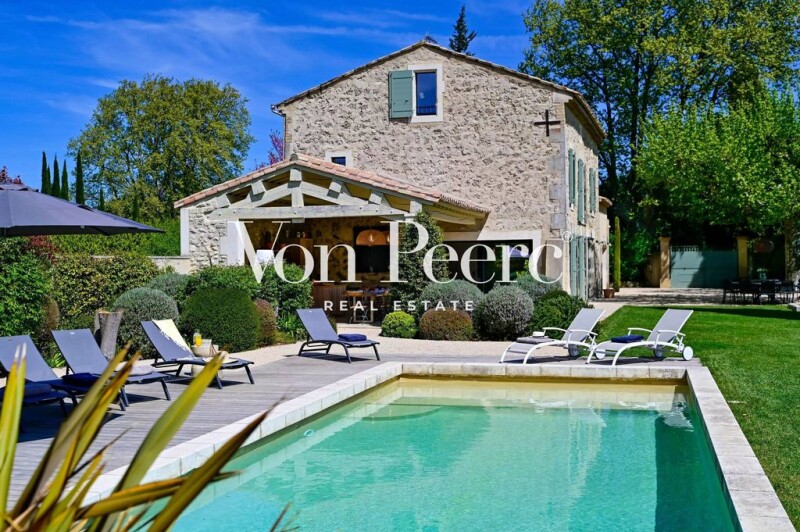 A few minutes from Eygalières and Saint-Rémy-de-Provence, this charming 280 m² property located in the countryside but not isolated has a landscaped garden with swimming pool (chlorine) and a large covered terrace equipped with a magnificent summer kitchen to enjoy friendly meals with family or friends as soon as the weather is nice. Completely renovated, this farmhouse rises on two levels and offers comfortable volumes, with six bedrooms and 4 bathrooms. The kitchen worktop is in marble with solid walnut facades. It opens onto a bright living space where ceiling beams bring a certain authenticity. The living room with a view of the garden benefits from a fireplace with insert. Outside, the beautifully landscaped garden is fully fenced for perfect privacy. This lovely product is a rare opportunity to fully enjoy the gentle Provencal way of life. No work is required, the roof is new. Price and information on request. Contact us now for a visit! Information on the risks to which this property is exposed is available on the Géorisques website: www.georisques.gouv.fr.