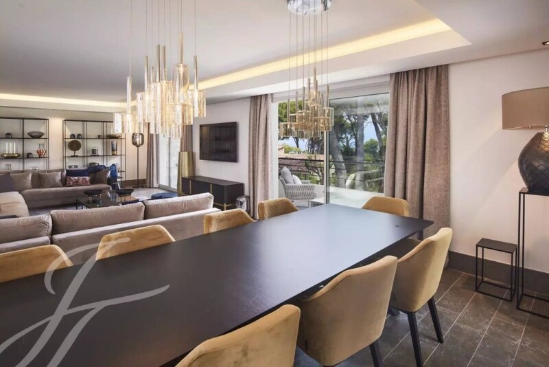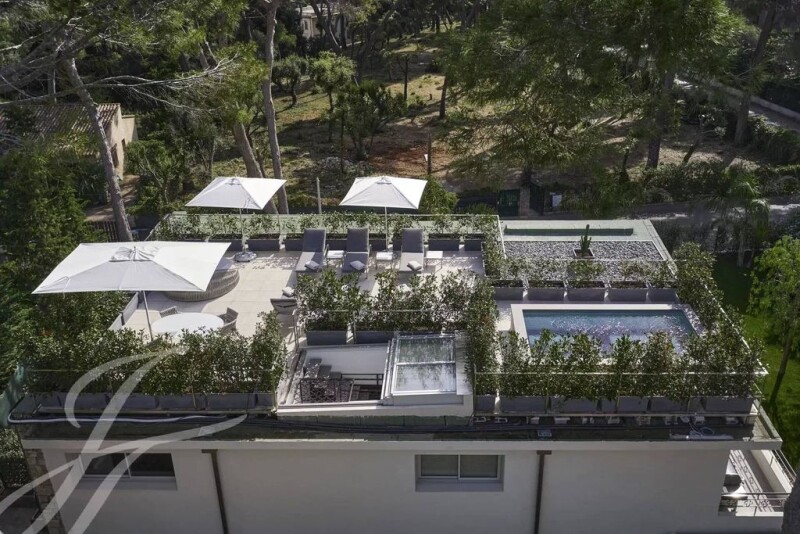 With its breathtaking view of the sea and the landscapes of Cap d'Antibes, very beautiful architectural villa from the 1950s, completely renovated. This superb property of approximately 220sqm will enchant you with its 867sqm wooded garden. Its intimate roof terrace reveals a magnificent view of the landscape, and you will enjoy a glass-bottomed swimming pool which creates a well of natural light. You will be dazzled by its chic and prestigious interior, entirely designed by a renowned interior designer. On the first floor, the living room, the dining room and the American kitchen are enveloped by the overlooking terrace. The heated swimming pool on the panoramic rooftop will allow you to enjoy the sun exposure all day long. daytime. On the garden level, five beautiful en-suite bedrooms with access to the garden. A garage. État des risques et pollution: réalisé (2024-03-27).