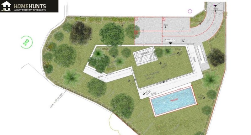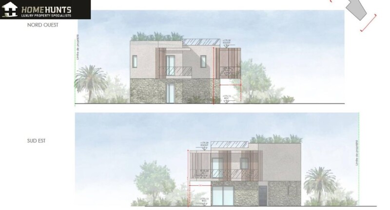 Nice Vinaigrier: Flat land of 1,086 m2, with an approved and cleared building permit for a contemporary-style construction of 174 m2, spread over two levels. The project also includes three parking spaces and a swimming pool. From the first floor, the project offers an unobstructed view of the surrounding hills and the sea. Located in a quiet and sought-after area, this land provides an excellent opportunity to create and experience a pleasant living place.